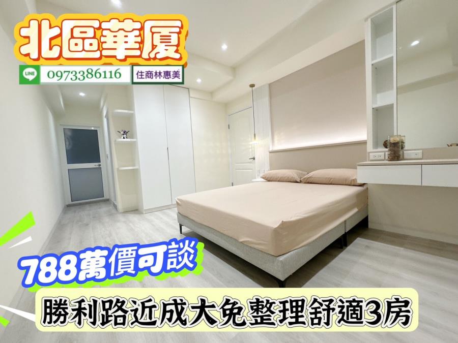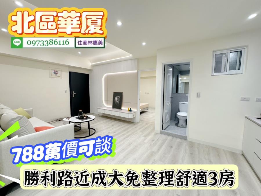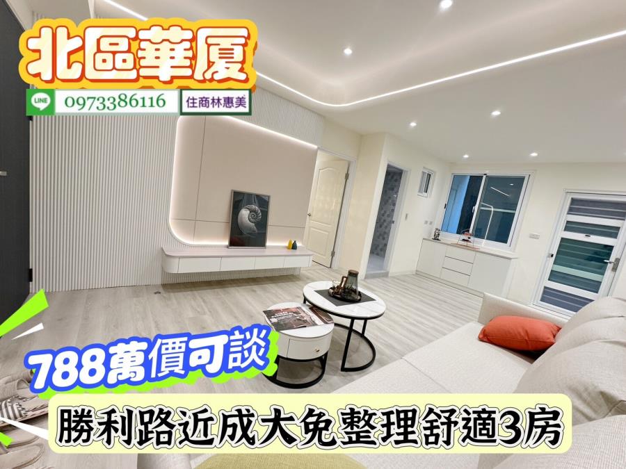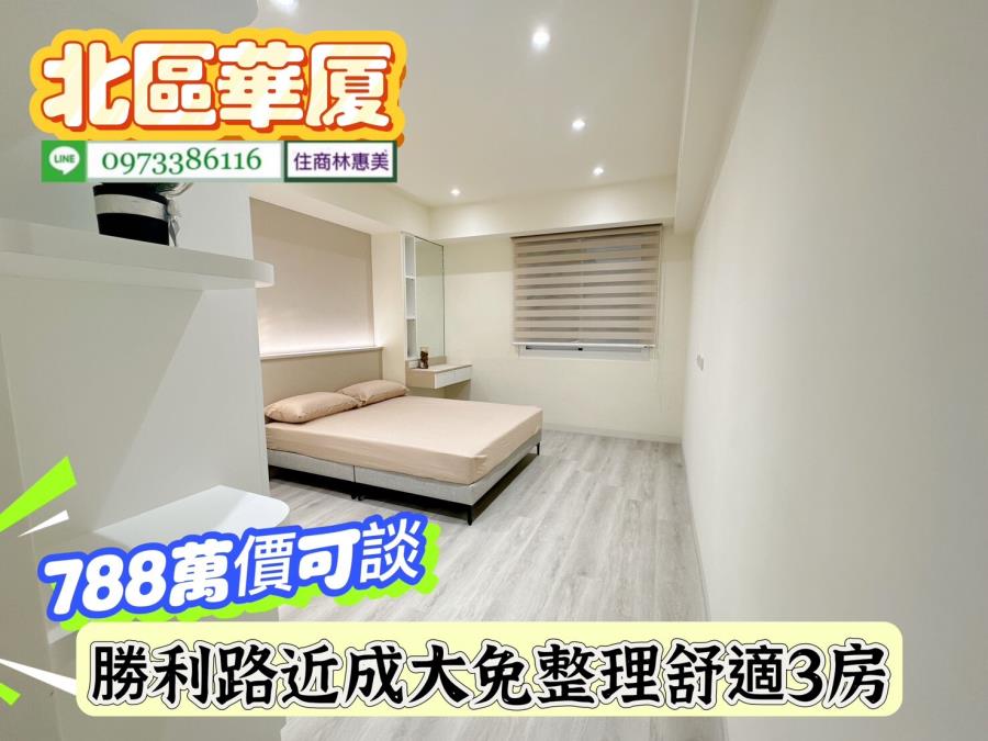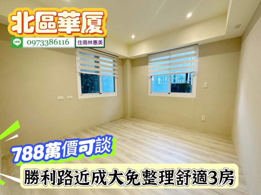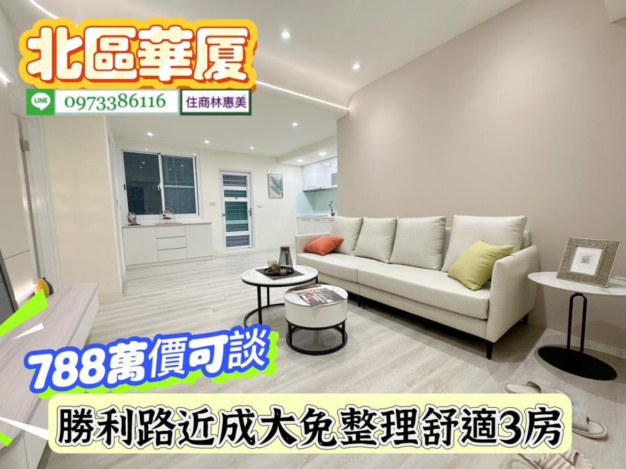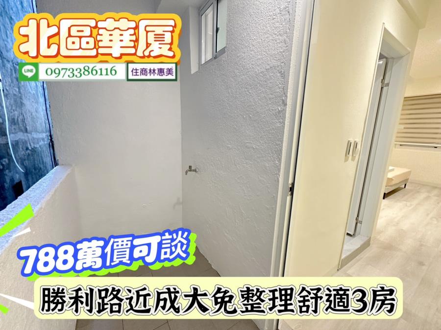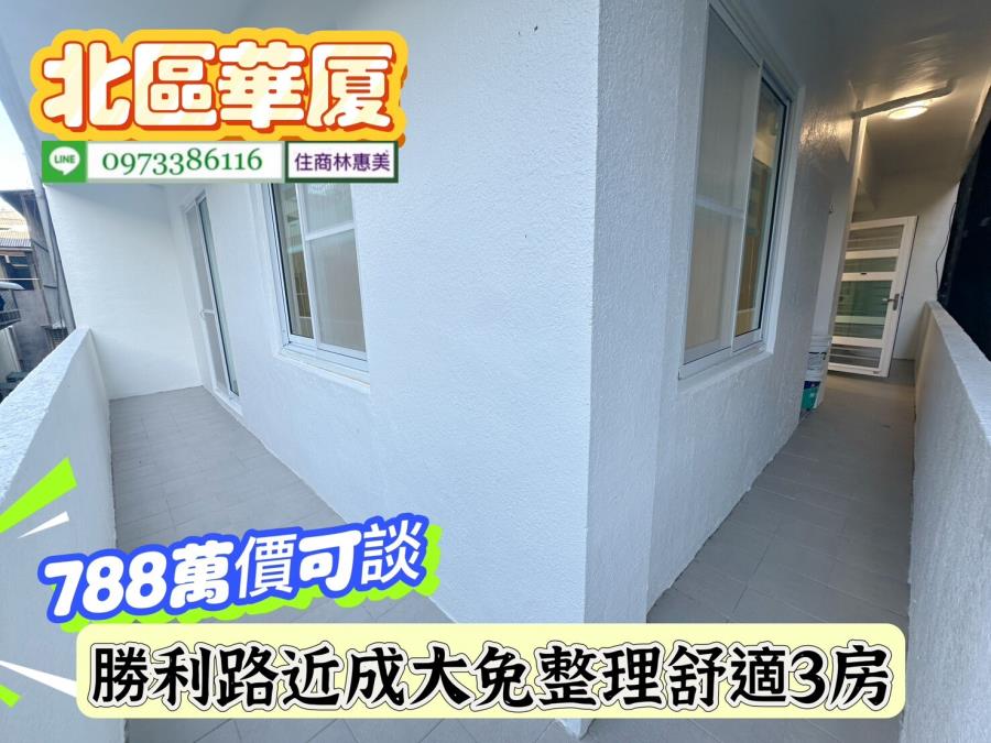 北區勝利路開元大廈近成大免整理舒適3房/售788萬價可談/林惠美0973386116 ♀️全新裝潢附傢俱,廚具IH爐安全無慮.衛浴更新.鋁門窗更新 ♀️近成大,台南火車站,走路上學.垃圾集中處理 ♀️學區、公園、超商,食衣住行樣樣行.生活機能強.交通非常便捷 ♀️ #請提前預約看屋感謝配合!! 【截圖廣告 » 加賴來電 » 留言需求 » 敲定看屋】 開 價 : #788萬元價可談 地址:#台南市北區勝利路 ✅建坪 : 29.996坪 ✅室內坪+陽台 :27.932坪 ✅格局 : 3房/2廳/2衛/2陽台 ✅屋齡 : 44年 ✅樓層 : 3樓/共6樓 ✅管理費 : 760元/月 ✅結構/用途 : 電梯華廈/住家用 ★急徵台南房.地買賣委託,住商不動產 全省聯賣 成交快速! ★房地行情市價評估、稅費銀行貸款、不動產相關問題.我幫你處理 ★買賣流程從帶看/下斡旋/簽約/貸款/過戶/交屋/由住商特約代書共同服務讓你買.賣無煩惱 ★廣告強力行銷曝光,『歡迎委託』沒賣出~不收任何費用!! ⭐想找符合自己需求的房屋⭐點擊下方連結立即看 https://0973386116.magent.com.tw/Blog/Default.aspx http://www.xn--6krtno7k7tdy2jxq8b8bsh6e.tw/ facebook.com/may0973386116 ⚠️若親人及朋友想買賣不動產(不限縣市區域),凡是介紹成功,酬庸答謝 ❤️您好!我是 林惠美,很高興為您服務。如未即時回覆您的訊息,我可能在騎歐兜邁、帶看房屋中.. 歡迎直接撥打 我的聯絡電話 或 透過預約看屋留下你的電話,我會儘快聯繫您! ✏️資訊若有植入錯誤,均依地政機關登記簿為準✏️ ♀️服務專員:#林惠美097338616 營業員/證號:林惠美(98)登字第134743字號 經紀業/加盟店:益利慶企業有限公司/住商台南誠品加盟店 經紀人/證號:王韻筑(102)南市字第00371號 ⭕️竭・誠・為・您・服・務⭕️ 物件資訊內容以登記簿謄本或預售屋買賣契約為準,若有疑問請洽承辦人員。